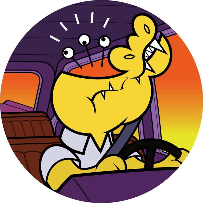 三つ目のオバケをモチーフにした作品をはじめ、明るく元気なポップアートで人気上昇中、ごみ収集車のデザイン、シャッターアート、パッケージアートなど、生活のさまざまなシーンでも作品が活かされている。