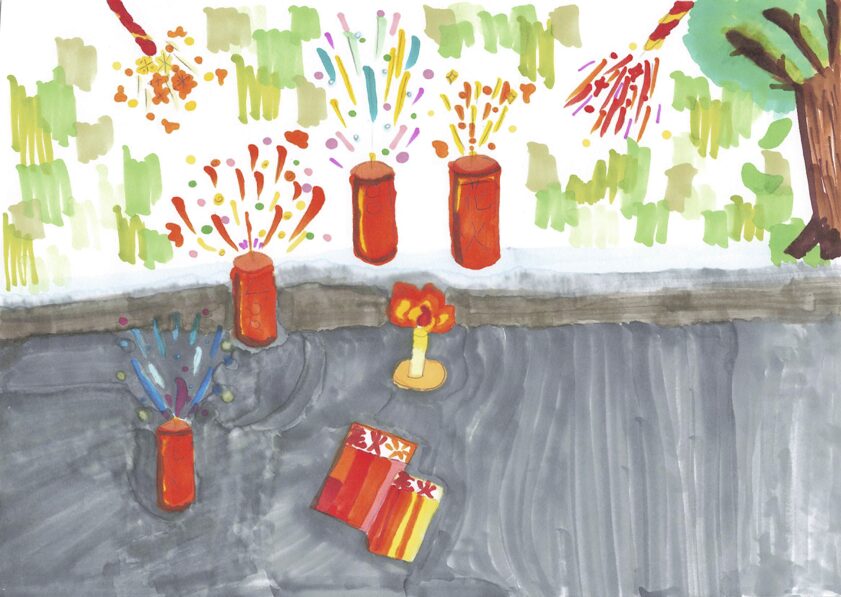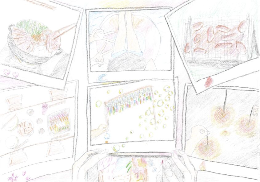 1つの題材にしぼることが難しく、1年である行事を何個か描いてみました。どれもいい行事だから捨てきれないものばかりでした。行事を写真に見立ててそれを1年通して携帯で写してる感じにしました。楽しい行事を知ってもらいたかったから、色々描きました。私にとってはどれも宝物です。