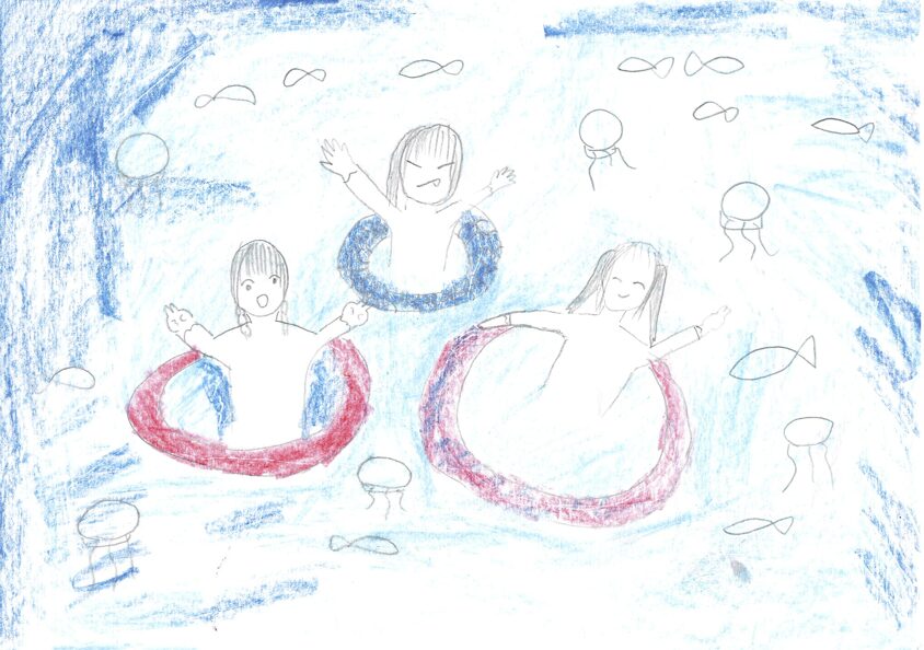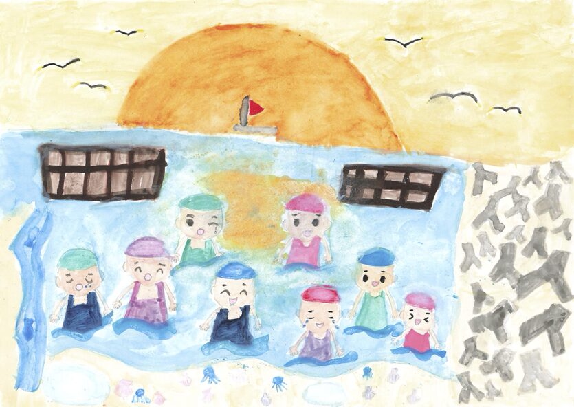 - みんなと仲良く入る海