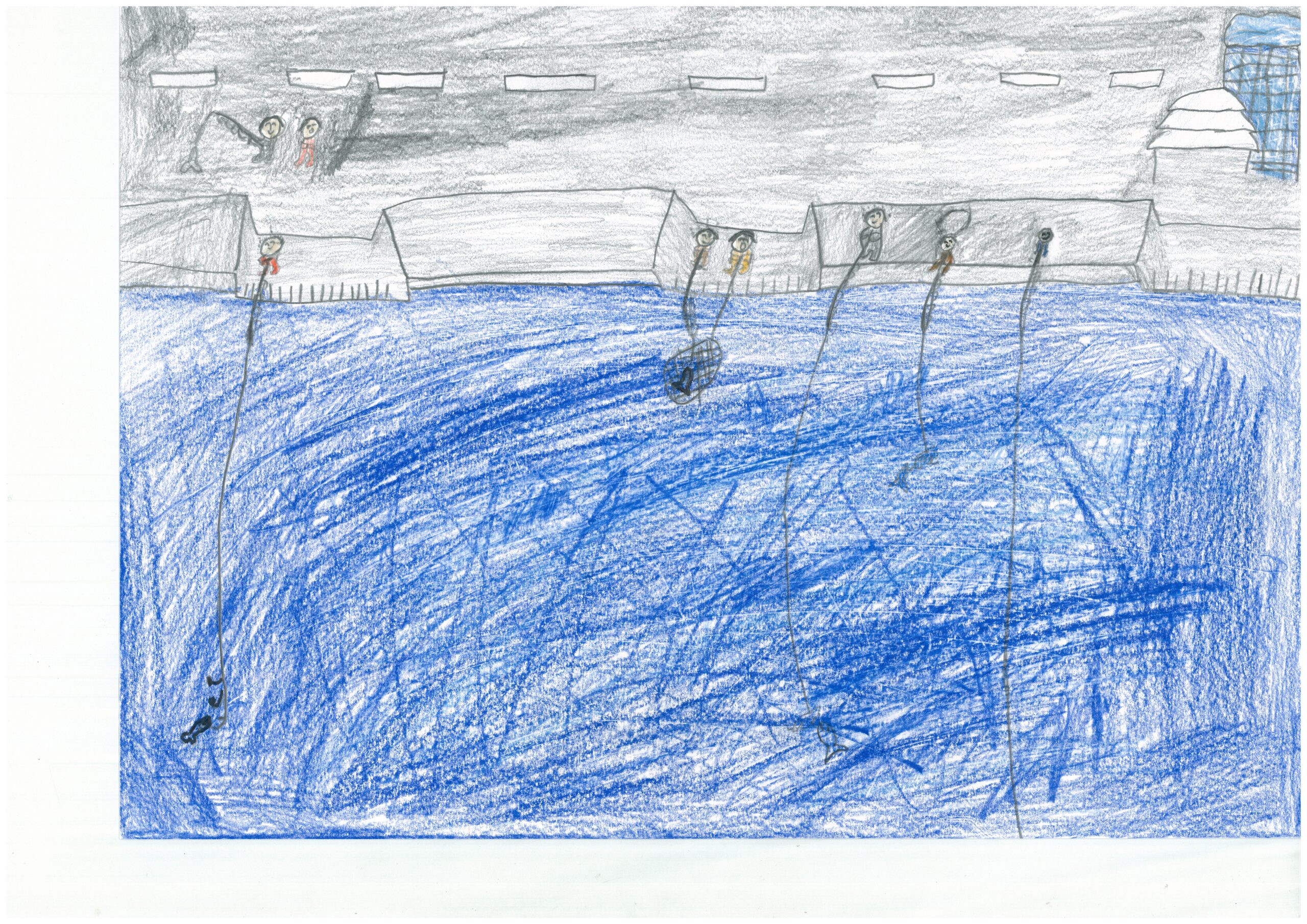 5年生からはじてやってみたらたのしかったしいっぱいつれたのでこのえをかきました。