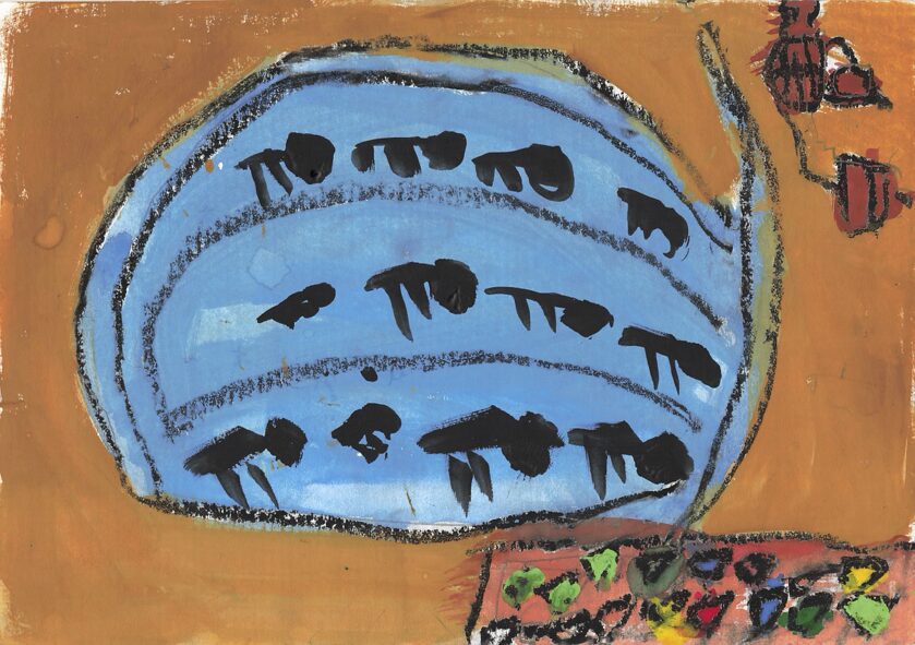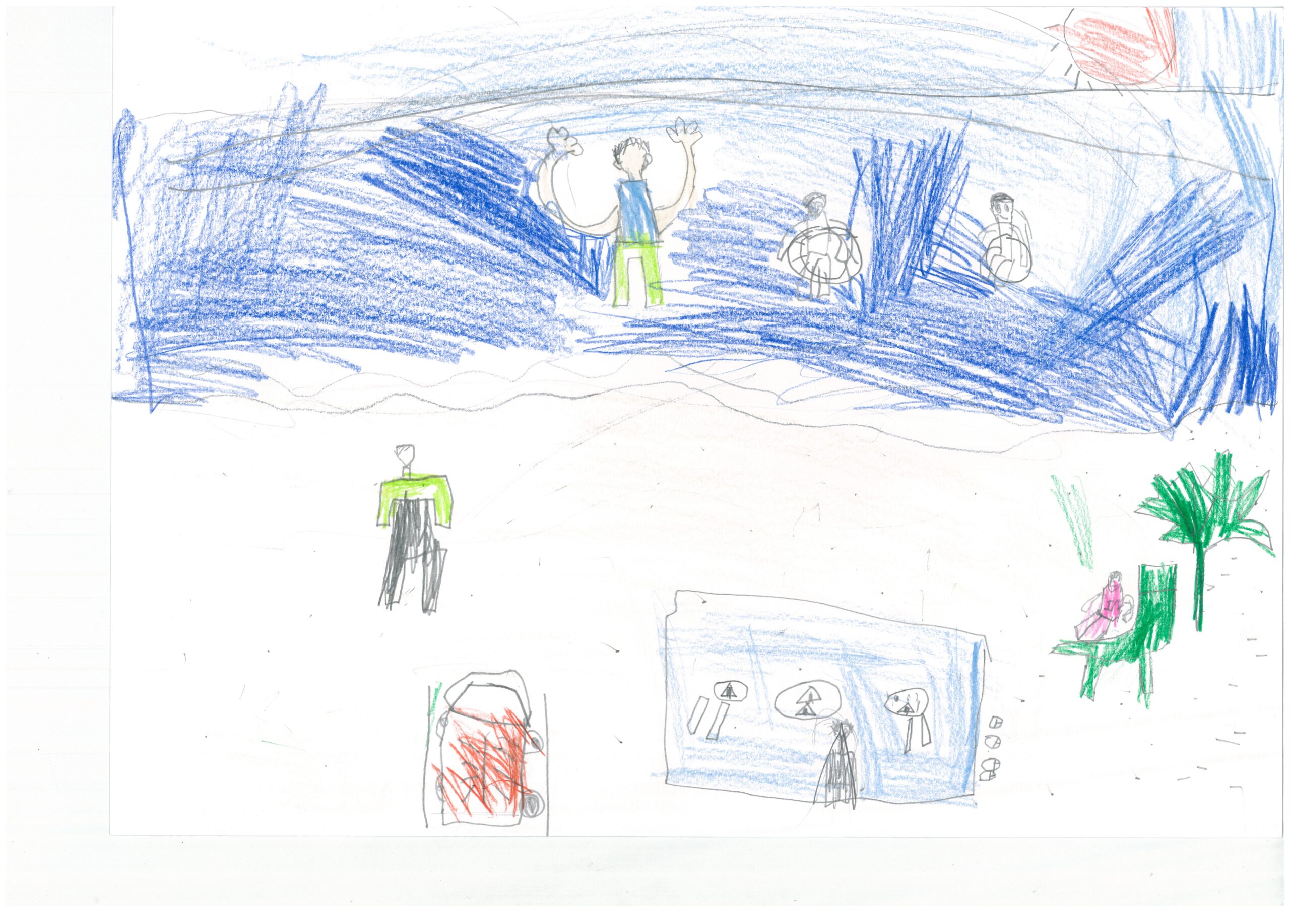 後ろの人たちも描かれていて、情景をよく覚えていることが伝わります。
